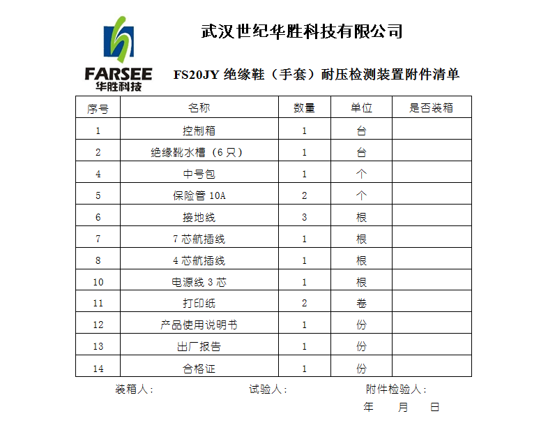 華勝FS20JY絕緣靴(手套)耐壓試驗裝置是根據國家電網公司發布的《電力安全工器具預防性試驗規程》(國電發[2002]777號)要求研制的預防性試驗專業設備,產品符合DL/T 976-2005《帶電作業工具、裝置和設備預防性試驗規程》和《帶電作業用絕緣手套用技術條件》GB 17622-1998。該產品有效地解決了傳統試驗方法的諸多隱患,提高了工作效率,保障了工作安全,是絕緣靴(手套)耐壓試驗最理想的裝置。