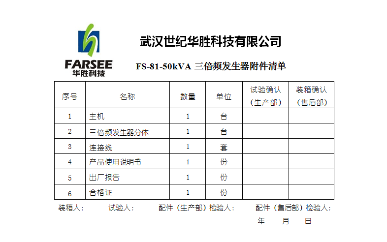 ◆ FS系列三倍頻電源發生器技術參數