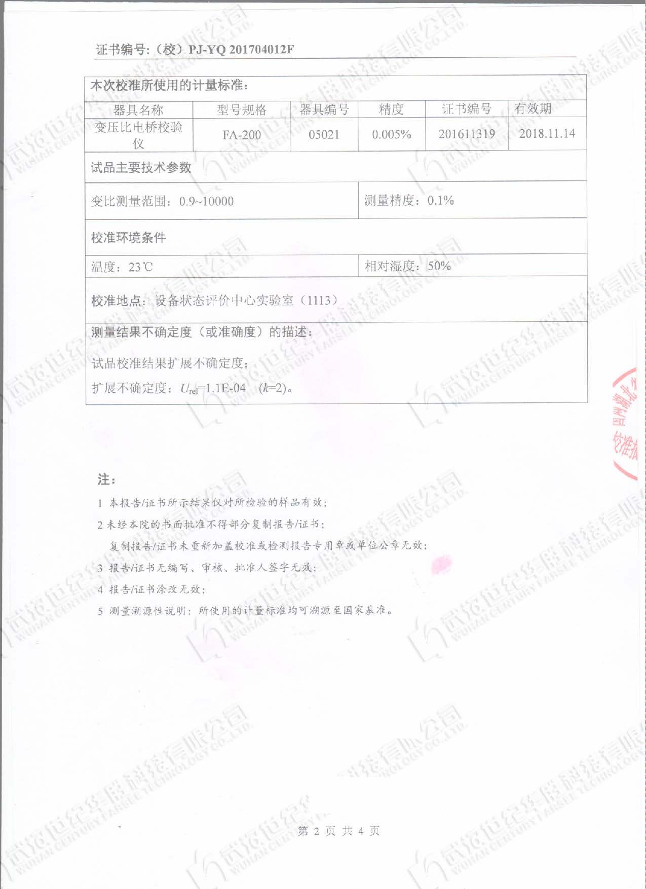 3、測量精度: 高壓側電壓的測量精度:0.05%