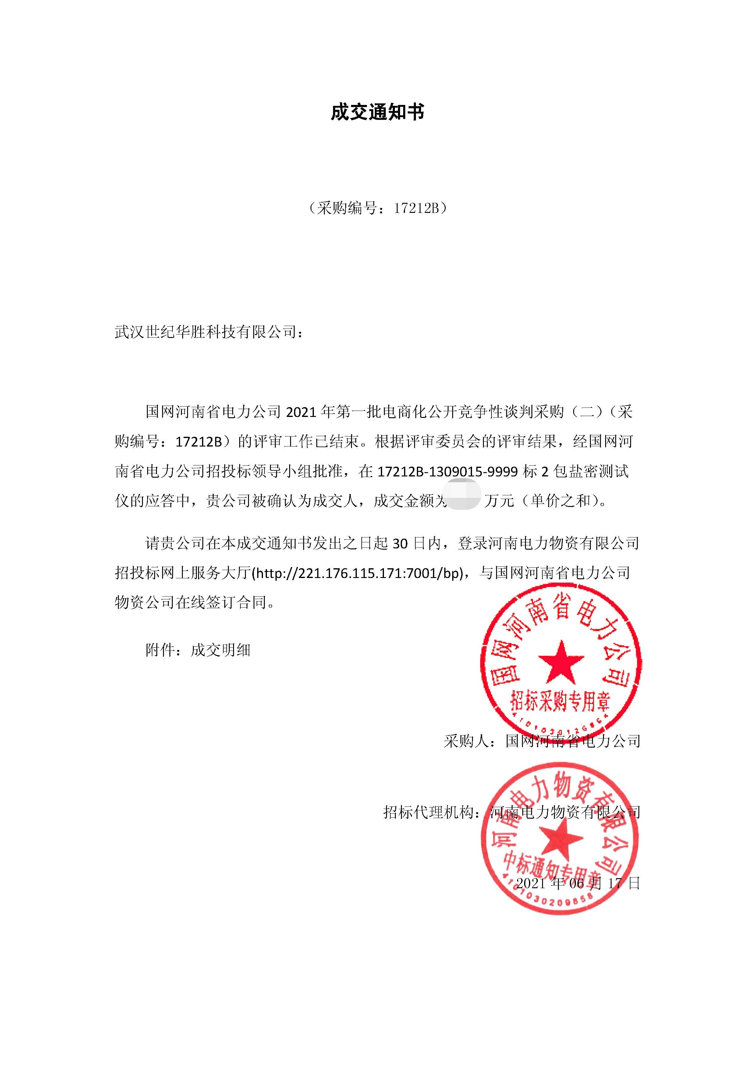 我司在國網河南省電力公司2021年第一批電商化公開競爭性談判采購項目中標